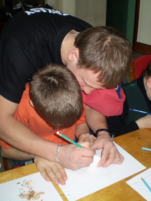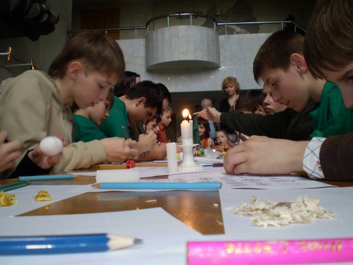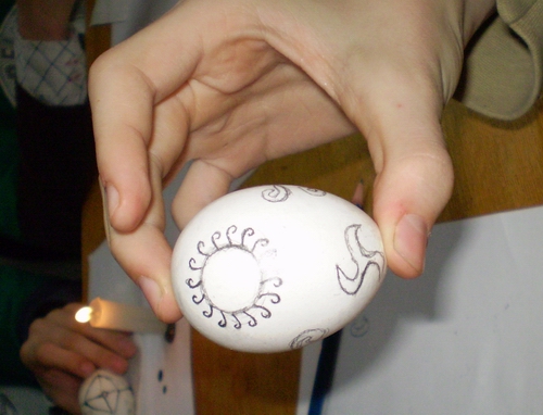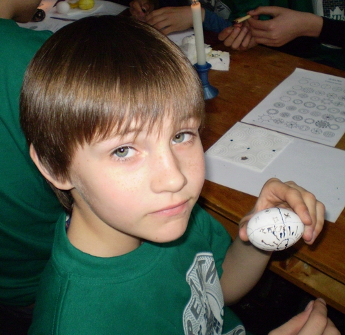 Почався майстер-клас із екскурсу в історію цього мистецтва та символіки слов’ян. Хлопцям, звиклим до динамічного способу життя, вже не терпілось перейти власне до розпису писанок. Уважно вислухавши майстра, юні баскетболісти (а сьогодні народні майстри) занурились у роботу.