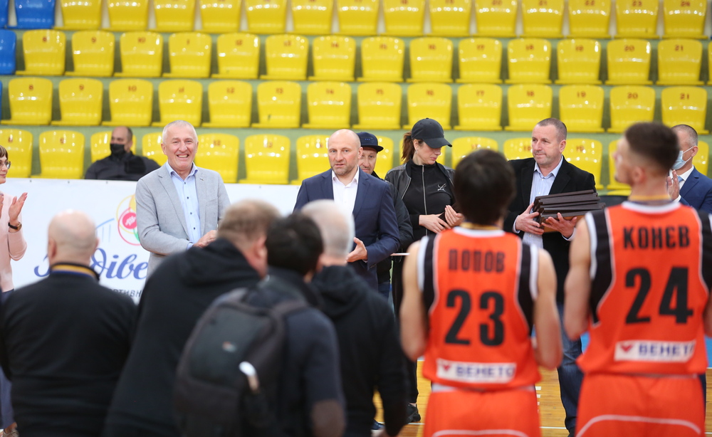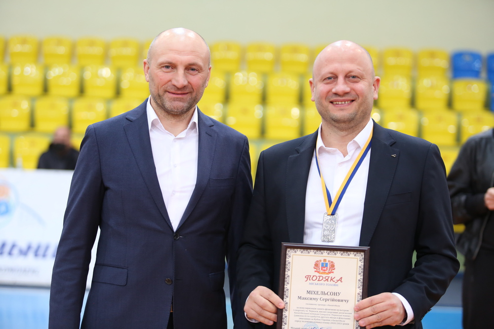 привітава гравців "Черкаських Мавп" із сріблом в Кубку України. Й відзначив подяками. Навзаєм, клуб подарував меру ексклюзивний баскетбольний м'яч із підписами всіх гравців команди.