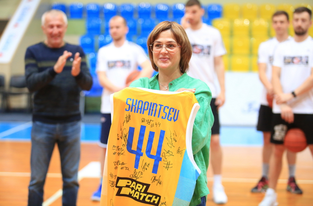 Вихованець та центровий "Черкаських Мавп" Дмитро Скапінцев подарували очільниці закладу особливу річ - власну ігрову майку збірної України з автографами усіх баскетболістів!