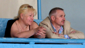 Серед глядачів на балконі був помічений відомий український дизайнер та виробник хутряних виробів Віктор Антоненко з дружиною. Подружжя вболівало за свого сина, який, до речі, був на висоті.