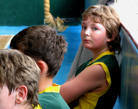 ))) "зелений" відбирає у кіндерів м'яча. Насправді серед "червоних" більшість гравців 99-ого та 2000-ого року народження. І тому така різниця габаритів.