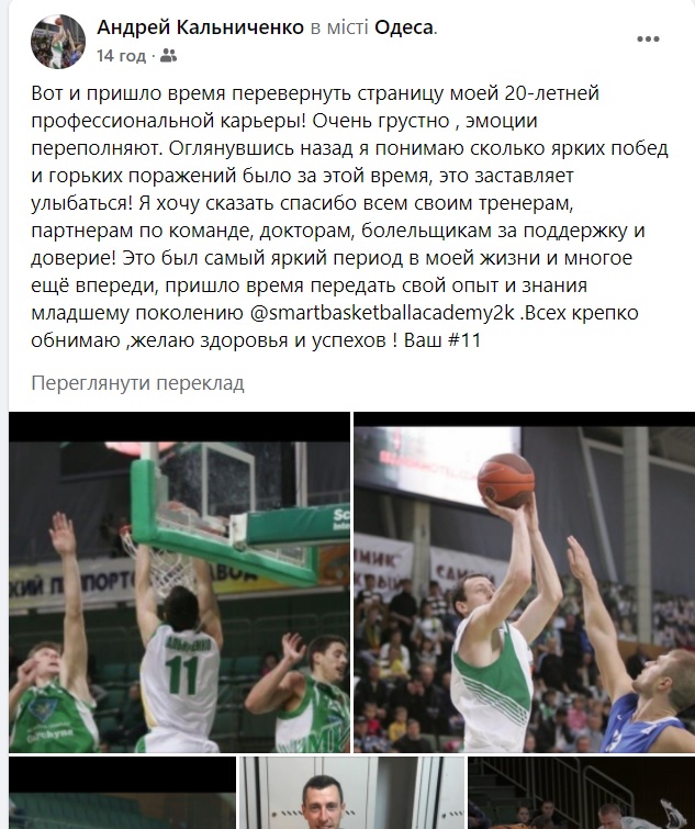 Один з найкращих баскетболістів в історії Черкаських Мавп, колишній капітан команди Андрій Кальніченко завершив ігрову кар'єру. 35-річний баскетболіст оголосив про це на своїй сторінці у Facebook.