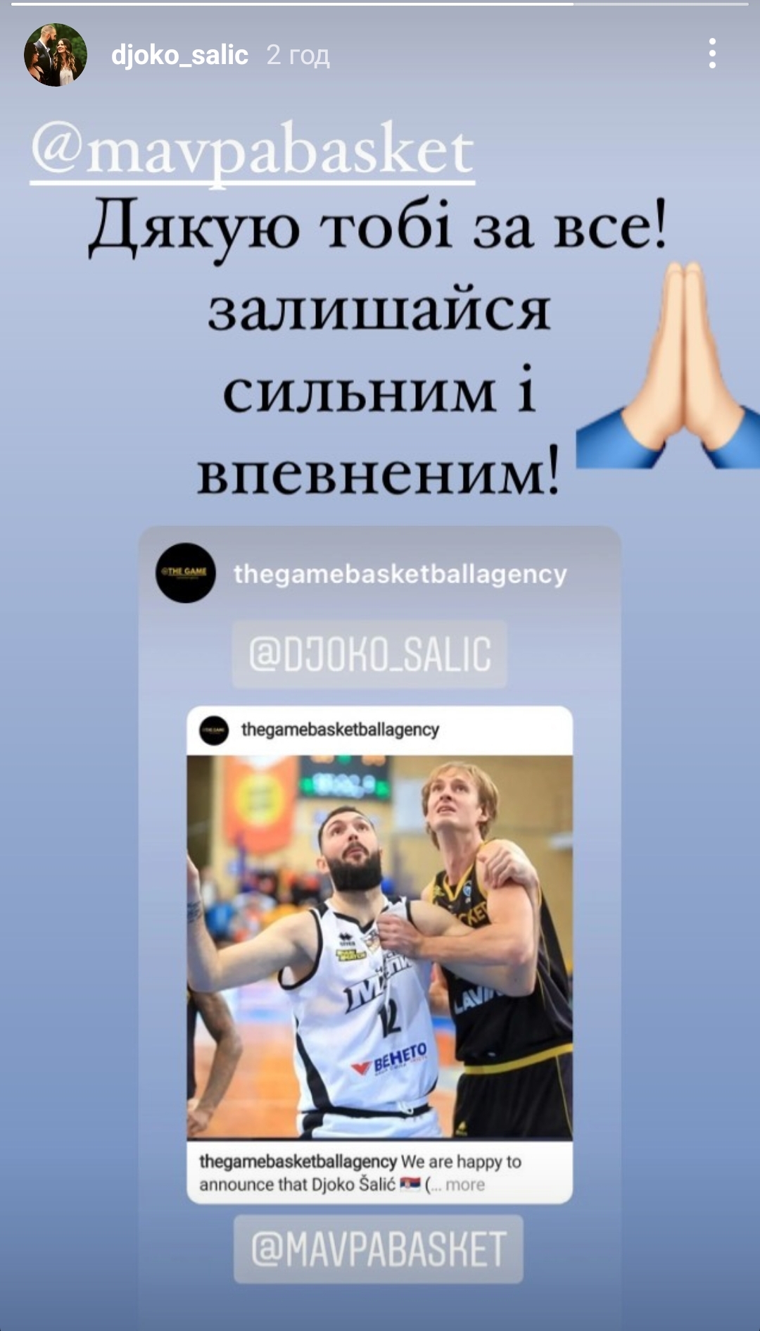 Сербський центровий Джоко Шаліч звернувся до Черкаських Мавп та українців. Баскетболіст підтримав нашу країну, на яку віроломно з війною вторгнулася Росія.
