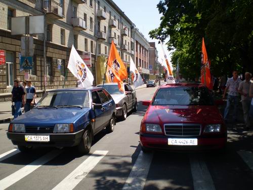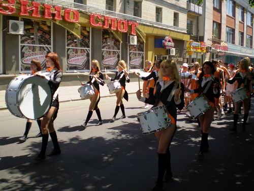 На чолі колони чарівні дівчата з групи підтримки. Початок Свята