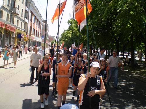 Свято розпочалося зі святкової ходи, в якій взяли участь баскетбольні команди, група підтримки "Мавп" та стрітрейсери. Під чіткий ритм барабанів дівчат-черлідерів колона вийшла на площу. Там на неї вже чекали організатори Свята та глядачі.