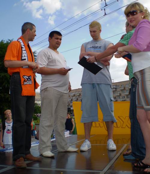 Ближче до вечора розпочались фінали серед стрітбольних команд. Як і очікувалось, матчі серед дорослих перетворились на справжні битви "титанів". "На десерт" глядпчам залишився поєдинок між черкаською командою "НАСА" та запорізьким "Рубероідом". У важкій та безкомпромісній боротьбі черкасці виявились сильніші, залишивши, таким чином, головну нагороду та 4 призових телевізори у нашому Рідному Місті. Загалом, у турнірі взяло участь більше 120 команд. Були гості з Запоріжжя, Дніпропетровська, Гомеля.