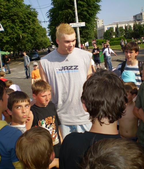 Під час конкурсу у натовпі з'явився хлопець, не впізнати якого було просто неможливо. Люди, які уважно слідкують за баскетболом, знають, що колишній гравець "Мавп", а нині Юти Джазз (NBA) зараз перебуває в Черкасах. Але малеча, яка одразу оточила свого кумира і гадки не мала, що буде такий сюрприз. Кирило допоміг підраховувати Тайсону гроші і, власне, сам додав до його перемоги купюру з двозначним числом. На сцені Кирило Фесенко сказав: "Повертатись в Черкаси завжди добре. У мене небагато вільного часу, я в Черкасах лише на один день. Спеціально на Свято Баскетболу приїхав". До речі, фотосесія з Фесенком тривали мало не півтори години, і Кирило не відмовив жодній людині у фото чи авторгафі.