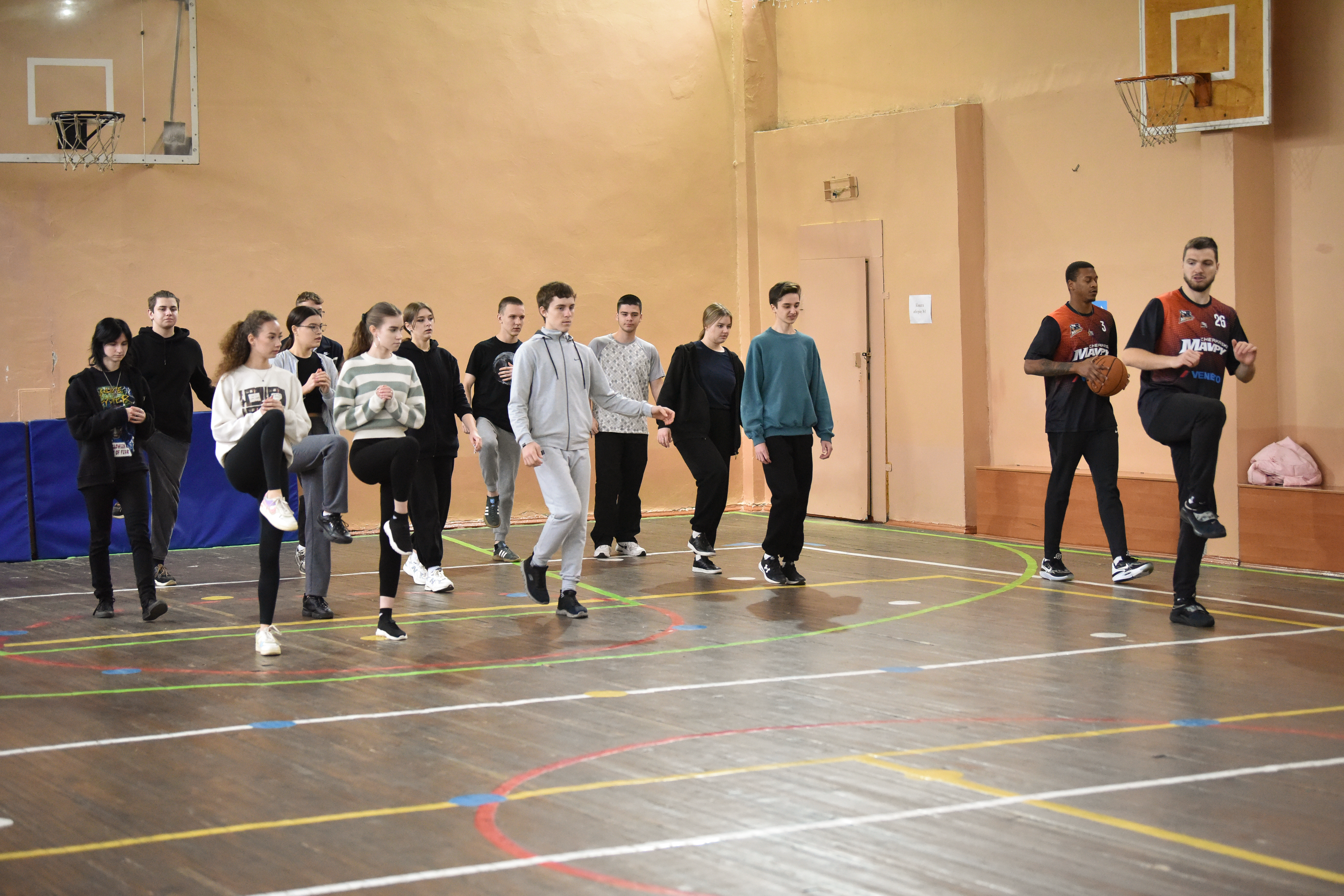 Після швидкого знайомства гравці Мавп беруться за свою справу. Разом з баскетболістами працюють одинадцятикласники. Для початку, потрібно як слід розім’ятися, аби під час гри не отримати ушкодження. Професійну розминку проводить Нікіта Руслов.