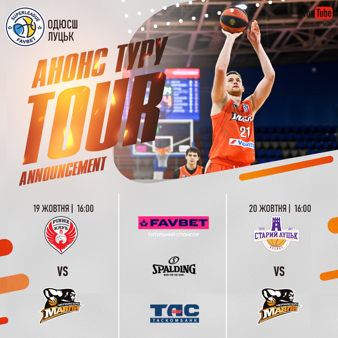 Цього тижня «Черкаські Мавпи» вирушають до Луцька для участі в наступному баблі Суперліги Favbet, де на них чекають два матчі. 19 жовтня наша команда зустрінеться з БК «Рівне», а вже наступного дня, 20 жовтня, зійдеться з господарями майданчика — БК «Старий Луцьк». Обидві гри заплановані на 16:00.