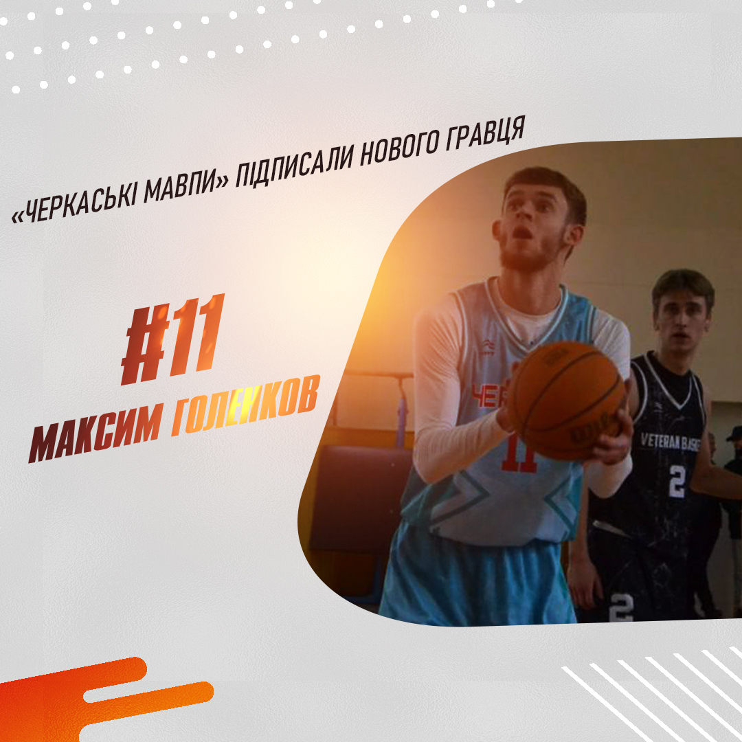 Баскетбольний клуб «Черкаські Мавпи» оголошує про підписання нового гравця – Максима Голенкова (2003 р.н. 196 см). Перспективний форвард є вихованцем баскетбольної школи «Черкаські Мавпи», що додає ще одну важливу сторінку до історії клубу, адже він розпочав свою кар'єру в системі клубу.