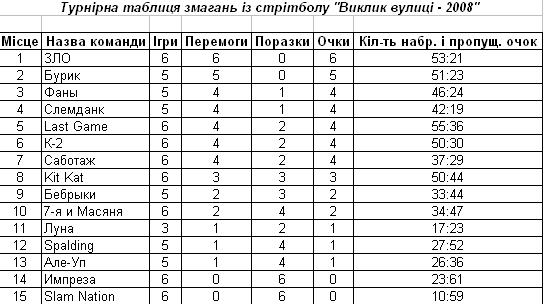 "Виклик Вулиці-2008". Турнірне становище на 18 серпня
