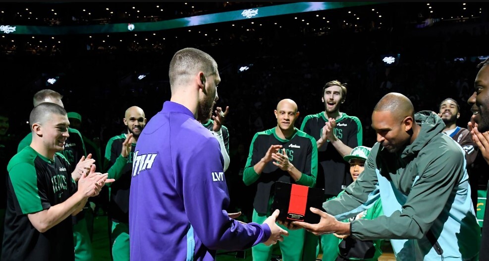 Перед виїзним поєдинком у TD Garden на честь черкасця на великому екрані арени показали триб’ют-відео з найяскравішими моментами його виступів за Бостон. Після цього партнери по минулорічному чемпіонському складу Селтікс вручили Святославу чемпіонський перстень.