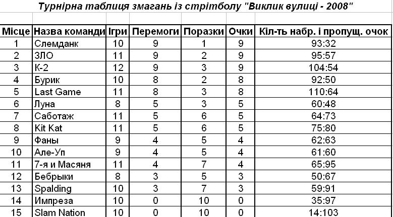 "Виклик Вулиці-2008". Турнірне становище на 25 серпня