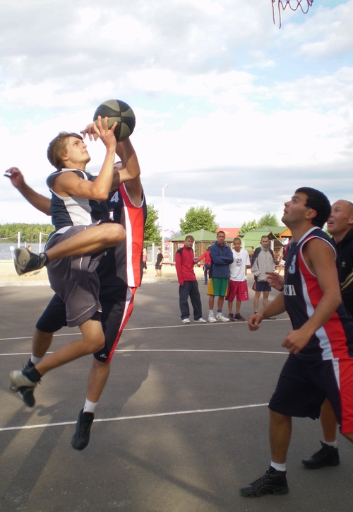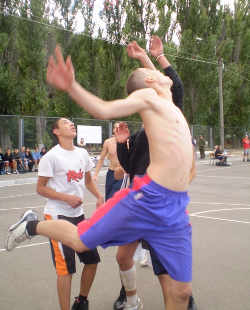 Стрітболісти - народ скромний. Оць цей гравець закрився м'ячем від папарацці, але це не допомогло. В польоті - гравець "Буріка"