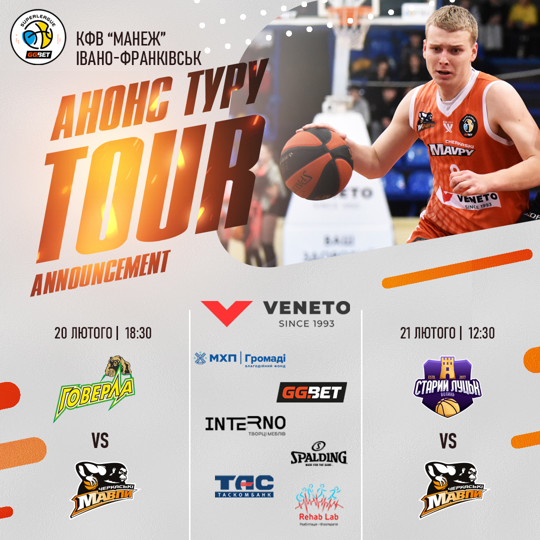 «Черкаські Мавпи» продовжують регулярний чемпіонат Суперліги GG.Bet виїзним туром, який відбудеться 20–21 лютого у Манежі КФВ (Івано-Франківськ).
