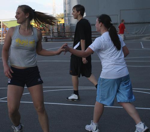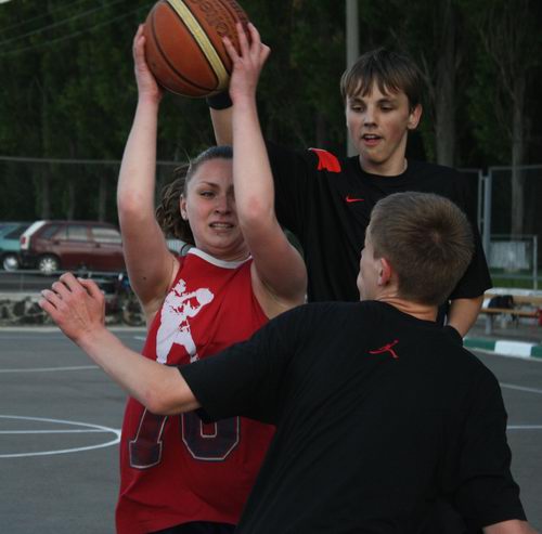 Прес-центр "Черкаських Мавп" в особі пана Євгена підкараулив з фотоапаратом молодих людей, які, певно, вже готували до "Виклику Вулиці 2009". Серед чоловічих спітнілих тіл було приємно побачити і тіла жіночі :) Прикрашали собою майданчик Леся Наумейко та Катерина Кутова, які грали розкуто і з посмішкою на обличчі. Цих дівчат всі запам’ятали ще з минулорічного «Виклику Вулиці» - представниці дівчачого стрітболу впевнено «виносили» деякі чоловічі команди. Серед інших відомих гравців на майданчику була помічена дівчина з «7 Я і Масяня» та гравець «Фортеці-94».