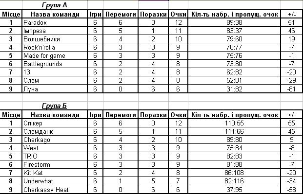 "Виклик Вулиці". Результати матчів та турнірна таблиця