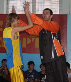 тренерами, щоправда, не професійними, а для студентів Черкаського політехнічного технікуму. Вчора, напередодні свого вечірнього тренування, баскетболісти провели майстер-клас для тамтешніх прихильників цього виду спорту. Слід сказати, що збірна технікуму також не ликом шита. Вона є чемпіоном області серед технікумів та коледжів. Візит висококласних баскетболістів тренерський склад тут розцінює, як новорічний подарунок.