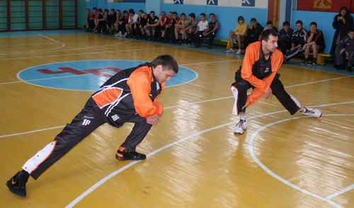 Олександр Ворона: «Сьогодні ми пропонуємо студентам потренуватися, використовуючи нашу командну методику. Тобто ми показуємо ті вправи, які на тренуваннях відпрацьовуємо самі. До того ж це заняття хочеться зробити в більш легкій, ігровій формі, аби навіть ті, хто не грає в баскетбол, захотіли взяти м’яч у руки».
