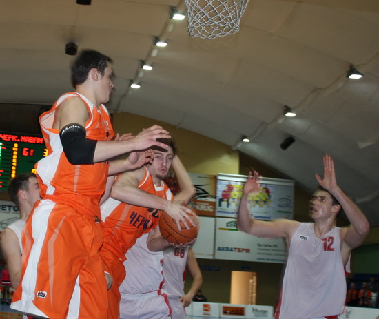 Після такої інформації писати про щось насущне вкрай важко, однак спробуємо відзвітувати про сьогоднішній матч «Мавп» та «Скорпіонів». Перший період не віщував черкащанам легкої долі. В цій грі кияни виглядали значно сконцентрованішими, ніж у попередньому матчі. Можливо, зарядженості на боротьбу «Скорпіонам» додавала гіркота розгромної поразки в попередній грі, а можливо, і присутність на тренерському містку їх наставника - Сергія Вишенського. В будь-якому разі гості після тайм-ауту того ж Вишенського зуміли відіграти стартову різницю в рахунку - 9:2. Допоміг це зробити «Скорпіонам» цупкий індивідуальний захист, яким вони прихопили команду Володимира Холопова. А на іншому боці майданчику своїй колишній команді почав відвантажувати очки Ігор Пилипейко. Гравець «Скорпіонів» лише в першій половині гри здобув 15 пунктів. Саме Ігор встановив підсумковий рахунок першої десятихвилинки – 21:16. Заспокоїти форварда приїжджої команди зумів Тарас Пономаренко, який «кліщем» учепився у свого опонента. Сталося це після того, як гості відірвалися на 8 очок – 29:21. Вдалі дії у захисті всієї черкаської команди стали твердим фундаментом ривка господарів (19:3 та 40:32) після першої половини зустрічі. Після такого нокдауну «Скорпіони» оговтатись вже не змогли. Натомість, черкащани доволі легко довели цю гру до важливої 28-ої перемоги поспіль в чемпіонаті. Знаменно, що до перемоги (яка достроково принесла «Черкаським Мавпам» золоті нагороди) причетні всі 12 виконавців. А відразу шестеро гравців команди набрали 10 і більше очок. Відзначимо Макса Пархоменка, який оформив дабл-дабл (12 очок та 10 підбирань), та Євгена Ткаченка, котрому вдалося стати найрезультативнішим гравцем команди - 15 очок за неповні 10 хвилин.