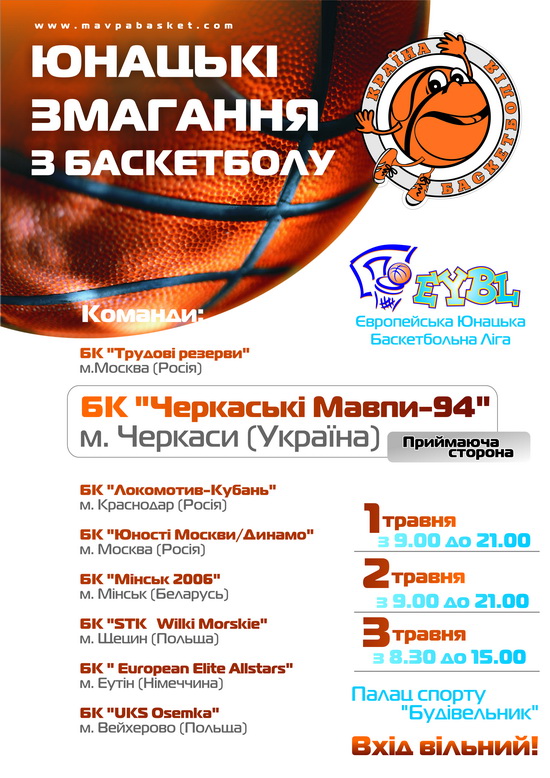 Україну на міжнародному турнірі представлятимуть «Черкаські Мавпи-94». Матчі цієї вікової категорії вирізняються неабиякою видовищністю. Отож, запрошуємо всіх підтримати нашу команду та поспостерігати за грою майбутніх зірок європейського баскетболу.