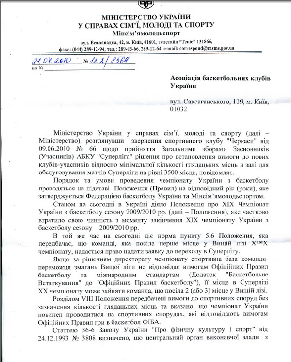 Мінмолодьспорт про ситуацію навколо "Черкаських Мавп"