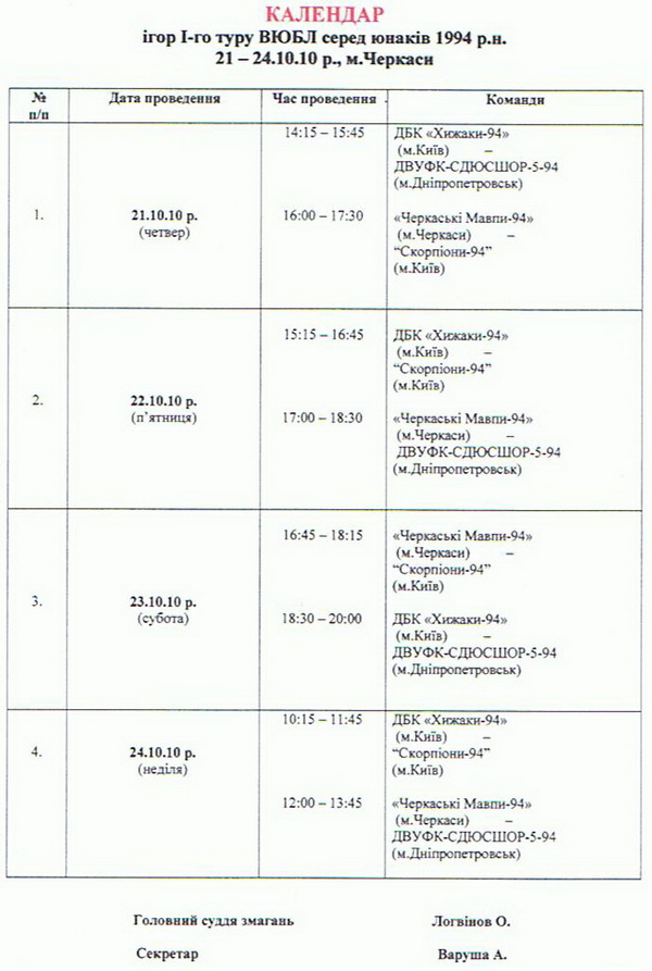 Сьогодні в Україні свій сезон розпочинають команди 1994-го р.н., що виступають у Всеукраїнській юнацькій баскетбольній лізі. Черкаси в цьому турнірі представлятимуть «Черкаські Мавпи-94». Відрадно, що перший тур ВЮБЛ відбудеться саме в нашому місті. Вже сьогодні в ПС «Фотоприлад» чотири команди з Києва, Дніпропетровська та Черкас відіграють свої перші матчі. Фінішуватиме перший тур в неділю.