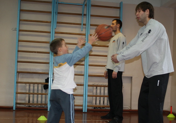 БК «Черкаські Мавпи» продовжує соціально-патріотичну акцію «Вперед Черкаси, ми з тобою». В її рамках баскетболісти клубу Максим Пархоменко та Михайло Насеннік провели майстер-клас для наймолодших учнів Черкаської загальноосвітньої школи №28. Навчати інших грів в баскетбол – це звична річ для наших баскетболістів. Так, Пархоменко минулоріч проводив майстер-клас для студентів політехнічного технікуму, а Насеннік навіть має невеликий тренерський досвід в роботі з юніорами. Щоправда, заняття в 28-й школі звичним тренуванням важко назвати, адже через свій юний вік тамтешнім школярам важко навіть виконати ведення. Зважаючи на це, форварди «Черкаських Мавп» побудували роботу в руслі спортивних розваг та різноманітних естафет.