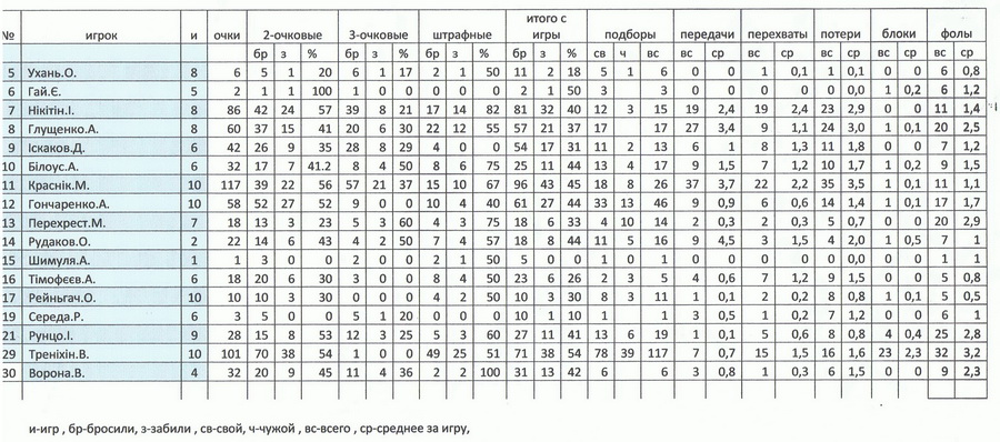Повна статистика гравців "Черкаських Мавп-2" в Першій лізі