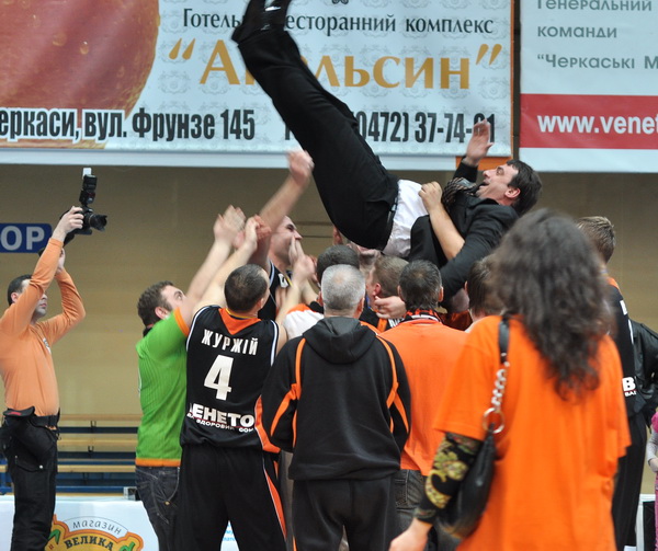 Значно емоційніше було після фінального свистка. Перший трофей в сезоні черкасці підкріпили командним хороводом, а після нагородження в повітря полетів Володимир Холопов, якого гойдали на руках – як головного творця нового володаря Кубка України. Цей успіх дає можливість черкаському клубу наступного сезону виступати в європейському турнірі – Кубку ФІБА.