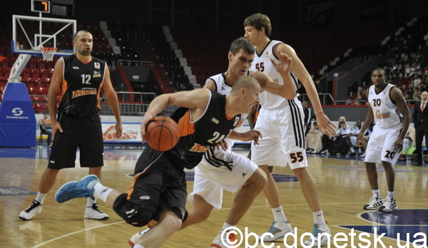 Сьогодні в Донецьку «Черкаські Мавпи» відіграли свій шостий матч в рамках Суперліги. Не лише реноме грізного суперника, а й перетрубації в складі черкасців внесли певний мандраж у дії помаранчево-чорних на старті цієї гри. Причому невпевненість в діях команди примусила Володимира Холопова вже в першій десятихвилинці випробувати новачків команди – Юрія Фрасенюка та Вілла Соломона. Зірковий новобранець черкасців, який з командою провів менше доби, вже в стартовому періоді набрав 8 балів. Однак це не єдине, чим могли б тішитися в першому періоді прихильники черкаського клубу, який програв десятихвилинку – 26:15.