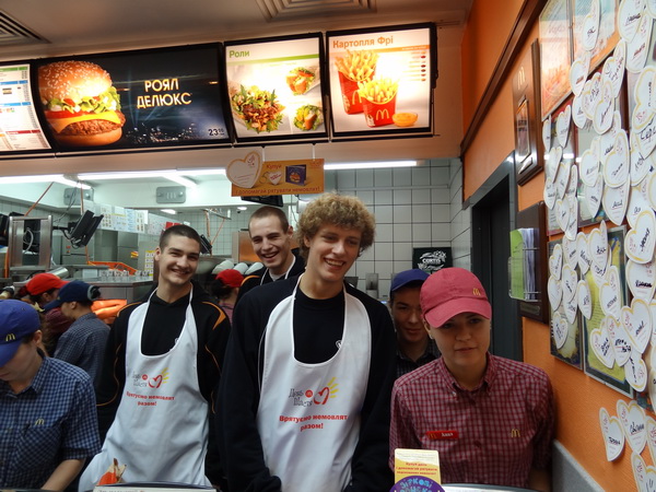 Молоді черкаські баскетболісти випробували власні сили в якості продавців у черкаському «МакДональдзі». Хлопцям захід сподобався, особливо після того, як вони дізналися про його благодійну місію.