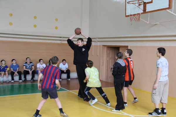 В другій частині майстер-класу Пархоменко та Шепіль взялися організовувати справжній баскетбольний турнір. Школярі були поділені на чотири команди, які спочатку в півфіналі, а потім і в матчі за нагороди демонстрували свої баскетбольні здібності. Абсолютно не загубилися серед маси юнаків та дівчат і баскетболісти, які здебільшого виконували функцію розігруючих і лише зрідка самі завершували атаки.