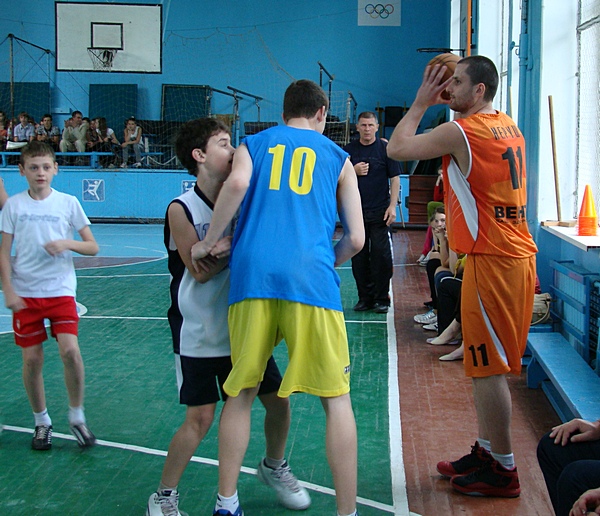 На завершення уроку баскетболісти лишили дітям найцікавіше – гру. Школярі поділилися на чотири команди – дві команди хлопчиків та дві – дівчат. Спочатку відбулася суто чоловіча гра, у якій у напруженій боротьбі перемогу над командою Антона Білоуса та Святослава Михайлюка здобув колектив Олександра Неруша і Микити Воєводи. У другій грі між собою зійшлися баскетболісти та дівчата. У такому ж безкомпромісному протистоянні другу перемогу на свій рахунок записали Неруш і Воєвода. Слід зазначити, що більшість очок у грі здобували саме учні, а баскетболісти лише кілька разів порадували школярів слем-данками.