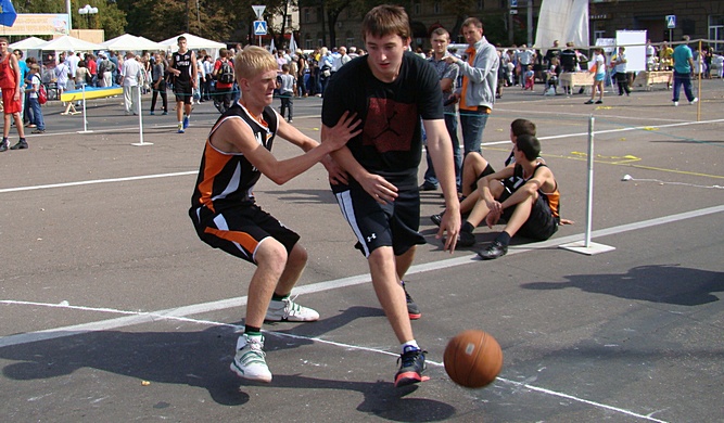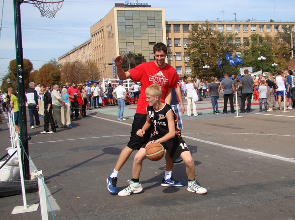 Проте справжній «зоряний десант» прибув на Соборну площу о 12-й годині. Свій майстер-клас для юних баскетболістів прийшли провести гравці «Черкаських Мавп» - Антон Білоус, Максим Пархоменко та Максим Івшин. Професійні баскетболісти запропонували своїм юним колегам виконати низку вправ на покращення дриблінгу та координації. Після цього «Мавпи»-професіонали зіграли у стрітбол проти гравців «Мавп-98». Молоді баскетболісти нічим не поступалися своїм колегам і навіть здобули перемогу.