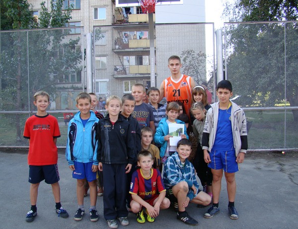 По завершенню заходу всі охочі мали нагоду сфотографуватися з гравцем «Черкаських Мавп». Перед тим, як залишити майданчик, Олександр Кобець зробив дітям ще один подарунок – і баскетбольний м’яч.