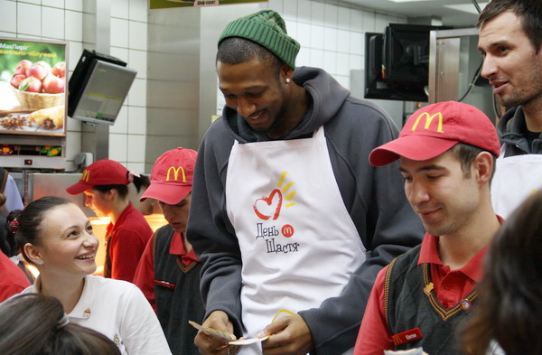 Уже традиційно учасниками «Дня щастя» у «МакДональдз»є представники БК «Черкаські Мавпи». За словами директора черкаського «МакДональдзу» Ігора Шапошника, завдяки підтримці спортсменів закладу вдається зібрати чимало коштів та заохотити містян долучатися до подібних благодійних акцій.