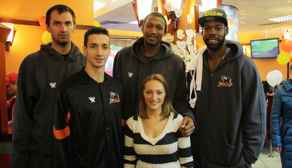 Окрім Івана Кольєвіча участь у благодійній акції взяли ще п’ять гравців баскетбольного клубу, а саме: Данте Свонсон, Максим Пархоменко, Вінсент Хантер, Андрій Корочкін та Чарльз Томас. Своїм прикладом баскетболісти вирішили ще раз довести, що не лише культурні, але й спортивні діячі міста регулярно вносять цінний вклад у низку благодійних акцій. Для цього баскетболісти наважилися змінити паркет та баскетбольний м’яч на касу у черкаському «МакДональдзі». Протягом декількох годин гравці агітували покупців купувати спеціальну акційну символіку та фірмову картоплю «фрі». Незвичайні продавці спричинили справжній ажіотаж серед черкасців. Завдяки спортсменам довжина черг перед касами росла по хвилинам.