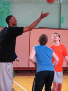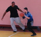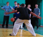 Двометровий баскетболіст змусив своїм доволі грізним на перший погляд виглядом вгамувати дзвінкий дитячий гамір у спортивному залі.