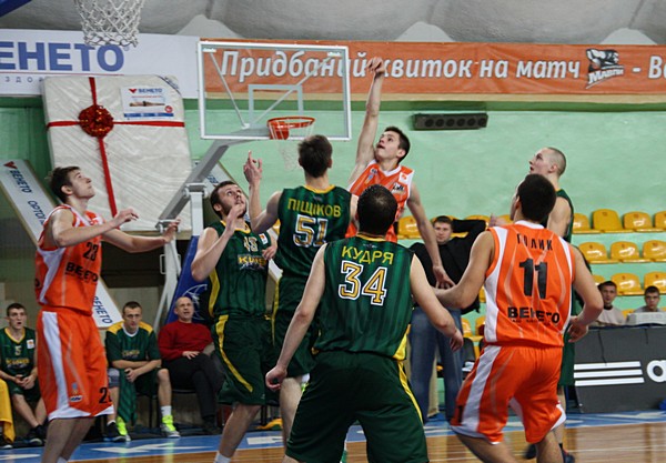 У стартовій 10-хвилинці господарі паркету швидко заробили гандикап у 7 очок, однак, наприкінці періоду, черкаські баскетболісти зуміли наздогнати суперника й зусиллями Олександра Кобця зрівняли рахунок – 21 : 21 . Другий період пройшов у рівної боротьбі. Проте під завісу першої половини гри завдяки вдалим спробам Олександра Фурса «вовки» забезпечили собі 10-очкову перевагу – 40 : 30 .