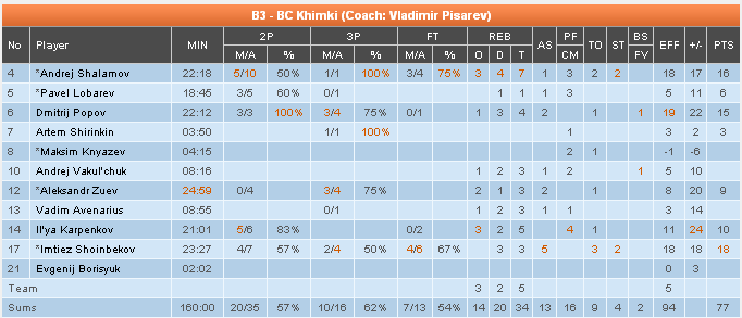 77 : 50. "Трапляються матчі коли в однієї команди виходить абсолютно все, а в іншої нічого. От сьогодні була саме така гра впродовж трьох чвертей. На жаль, ми сьогодні були в ролі команди в якої ні чого не виходило, натомість у "Хімок" навпаки виходило все. Вони виграли у нас підбір - 34 : 16, влучали триочкові кидки з показником 62,5 %. Ми програли гру за всіма показниками крім гольових передач. При цьому в першій чверті повністю контролювали хід гри. Перелом стався після замін гравців стартової п'ятірки, на жаль жоден гравець, який вийшов на майданчик із лави запасних не зміг зіграти на рівні, якого вимагала сьогоднішня гра", - зазначив після гри Максим Міхельсон, головний тренер "Черкаських Мавп-96".