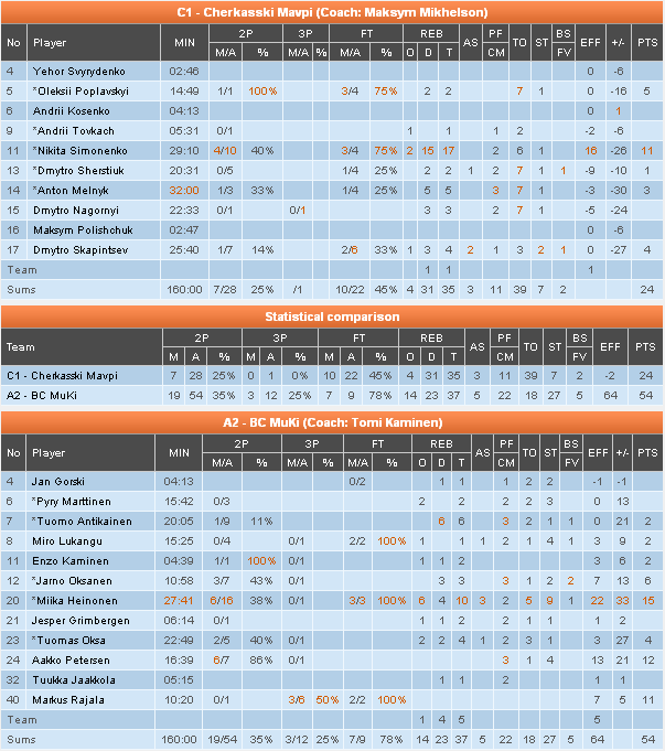 "Черкаські Мавпи-99" - BC "MuKi" - 24-54 (8:15; 6:12; 2:10; 8-17;)