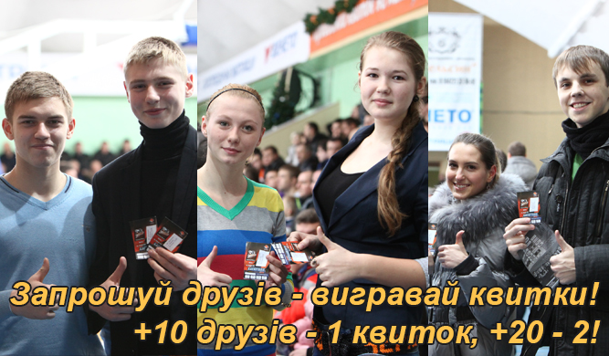 Запроси друзів на офіційну сторінку "Черкаських Мавп" https://www.facebook.com/MavpaBasket і гарантовано виграй квитки на гру! За +10 запрошених нових користувачів, які "лайкнули" сторінку, отримуєш 1 квиток, за +20 – 2 квитки.