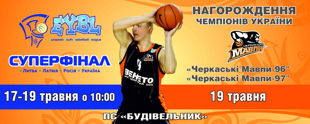Найближчого вікенду до Черкас завітає масштабна баскетбольна подія. Апогей юнацької Єврогіли під назвою Суперфінал ЄЮБЛ прийме черкаський ПС «Будівельник». В головному турнірі сезону серед юнаків 1996-го р.н. зіграють кращі сімнадцятирічні баскетболісти з Литви, Латвії, Росії та України. Протягом сезону Європейські клуби боролися за потрапляння у вісімку кращих, адже лише вісім клубів матимуть право розіграти почесний трофей у Черкасах. Нашу державу представлятиме чотириразовий чемпіон України – «Черкаські Мавпи-96». До слова, команда Максима Міхельсона в регулярному чемпіонаті ЄЮБЛ посіла 3-тє місце. Загалом, нашим хлопцям вдалося виграти 13 матчів європейського сезону з 15-ти.