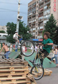 В самому центрі площі розмістилися ровери, які незважаючи на пекуче сонце долають круті віражі на своїх байках. "Бомбісти" - так називається графіті-шоу яке також буде проводитися сьогодні. Загалом на площі впродовж дня буде проведено безліч конкурсів та змагань. Завдяки нашим спонсорам переможці отримають цінні призи.