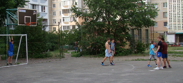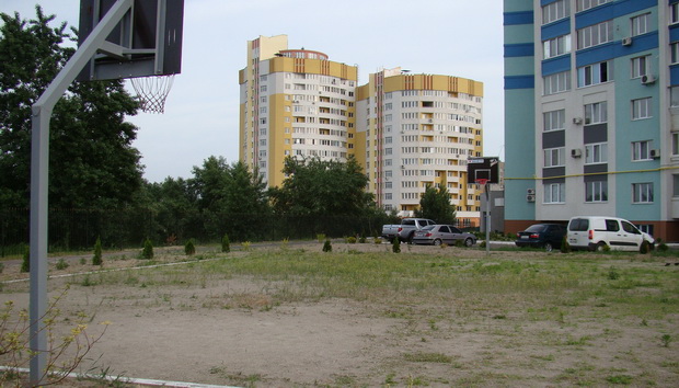 Двір на вул. Сталінграда,22Задля того, аби відвідати баскетбольні конструкції, котрі були встановлені у рамках проекту «Баскетбольний двір», ми обрали вечірню пору. Фактично на кожному майданчику діти грали у стрітбол. Десь вони боролися в рамках величного турніру, дехто самотужки відпрацьовував кидок. У дворі будинку по вул. Руставі, 11 ми зустріли школяра, що навчається у спеціалізованій гімназії №17 – Віктора Дідору, хлопець каже, що з баскетбольним м’ячем він майже кожного вечора.
