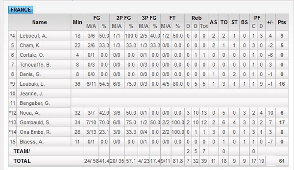 З перших хвилин гравці обох команд з повною концентрацію відпрацьовували у матчі. Протягом усієї зустрічі краще справи йшли у французької команди. Французи вийшли вперед в рахунку й тримали свою перевагу до кінця зустрічі. Українська збірна ж самовіддано наздоганяла свого суперника. Після складного початку матчу, до кінця першої чверті українці, зусиллями Святослава Михайлюка дещо наздогнали суперника. Черкаський баскетболіст не втомлюється "тягнути" за собою національну команду.