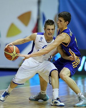 У середині другої чверті українці вперше за довгий час зрівняли рахунок. Але програш на підборах, плюс неуважна гра в цілому коштували команді Усенка ривка від суперника. Далі українська команда продовдила то скорочувати відставання, то знову відпускати французів. Втім на завершення першої половини українська збірна таки зуміла дістатися до суперника на невелику відстань. Ривок своєї команди забезпечив черкасець Ростислав Лунський. Наш форвард спочатку відзначився чудовим триочковим кидком, а потім й влучними двома балами.