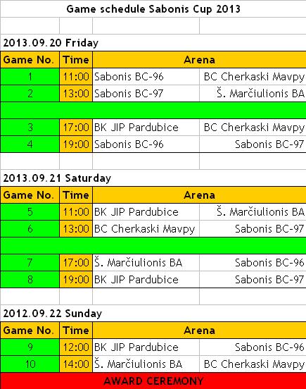 Завтра баскетболісти «Черкаських Мавп-96» вирушають до Литви, аби випробувати свої сили у міжнародному товариському турнірі «Кубок Сабоніса-2013». Престижні міжнародні змагання з баскетболу проходять у Литві кожного року. Цей турнір проходить на честь легендарного литовського баскетболіста Арвідаса Сабоніса. За головний трофей змагань боротимуться такі команди: