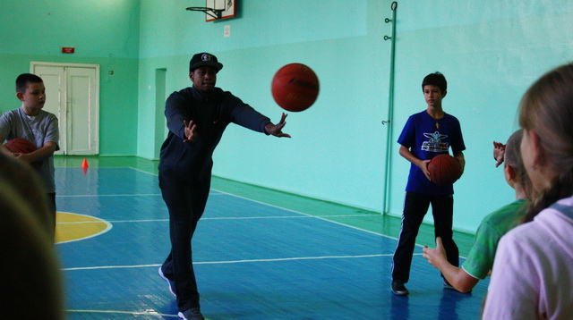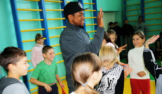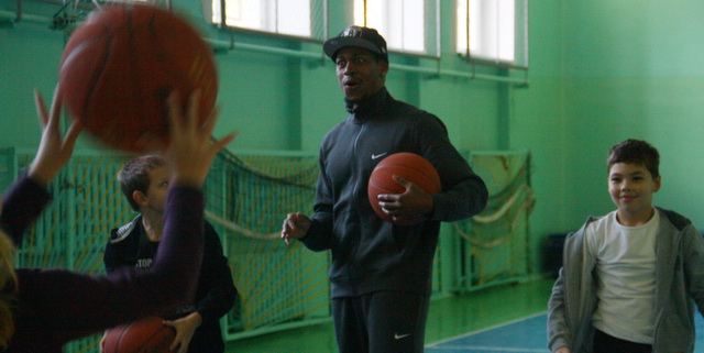 Террі в ігровій формі показав п’ятикласникам кілька видів передач. Правда, деякі з них виявилися занадто складними для молодої аудиторії. А от естафети були всім до снаги, не цурався цього заняття і сам баскетболіст. Наостанок Террі Сміт презентував школярам символічні подарунки та сфотографувався на пам’ять.